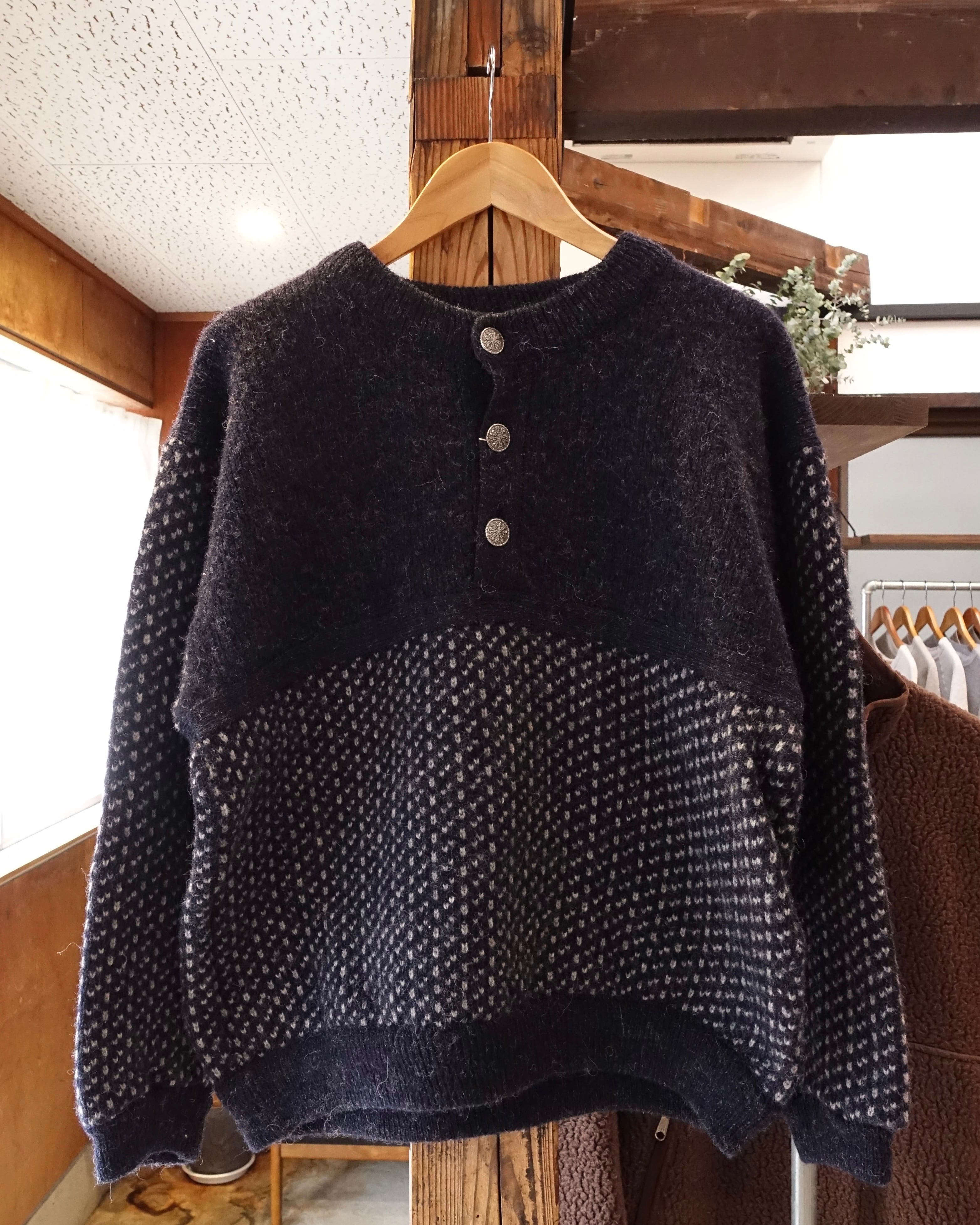 90s L.L.Bean Birdseye Henryneck Wool Sweater Size L