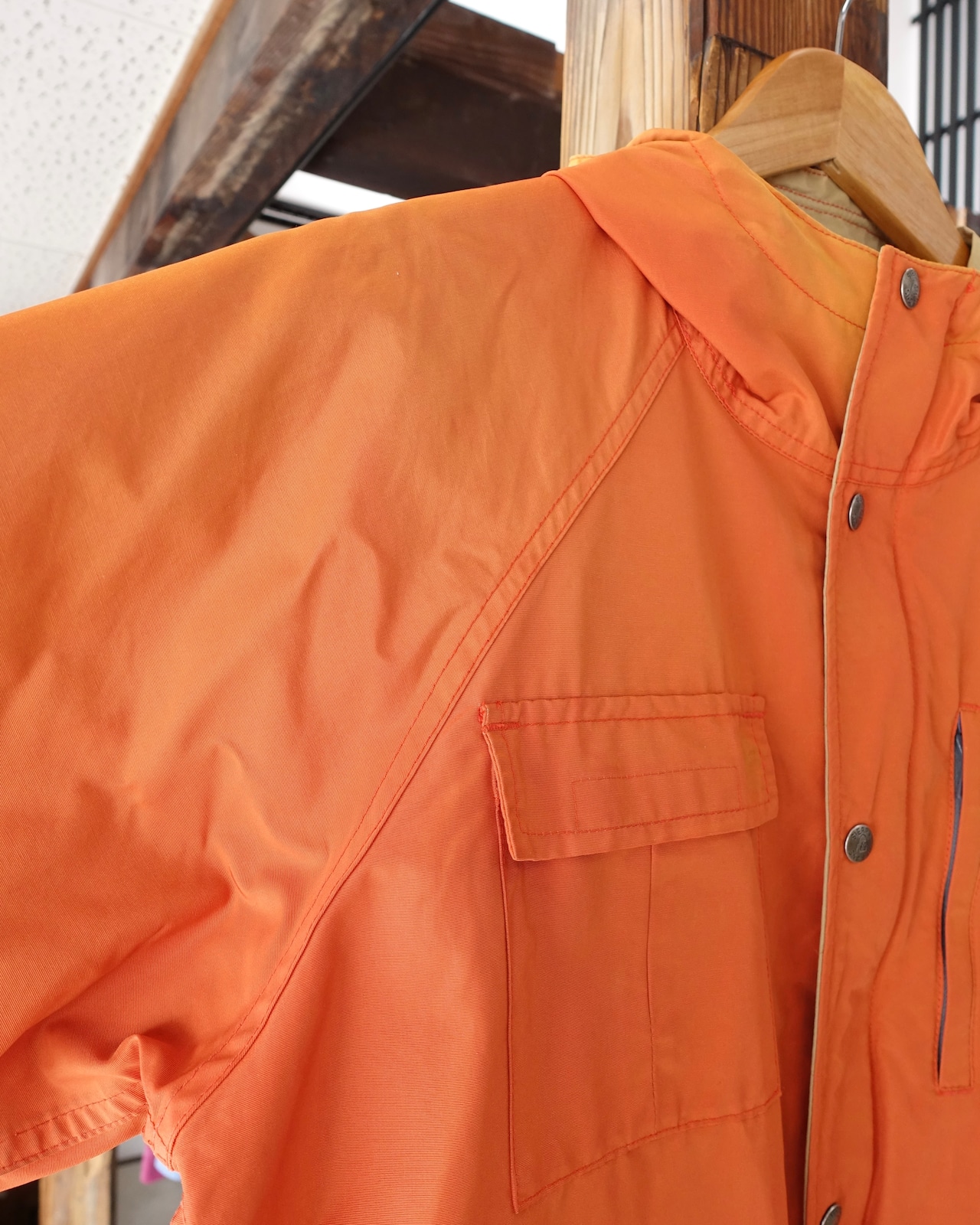 肩、腕、フード、前身頃に生地の焼けや色褪せがあります。