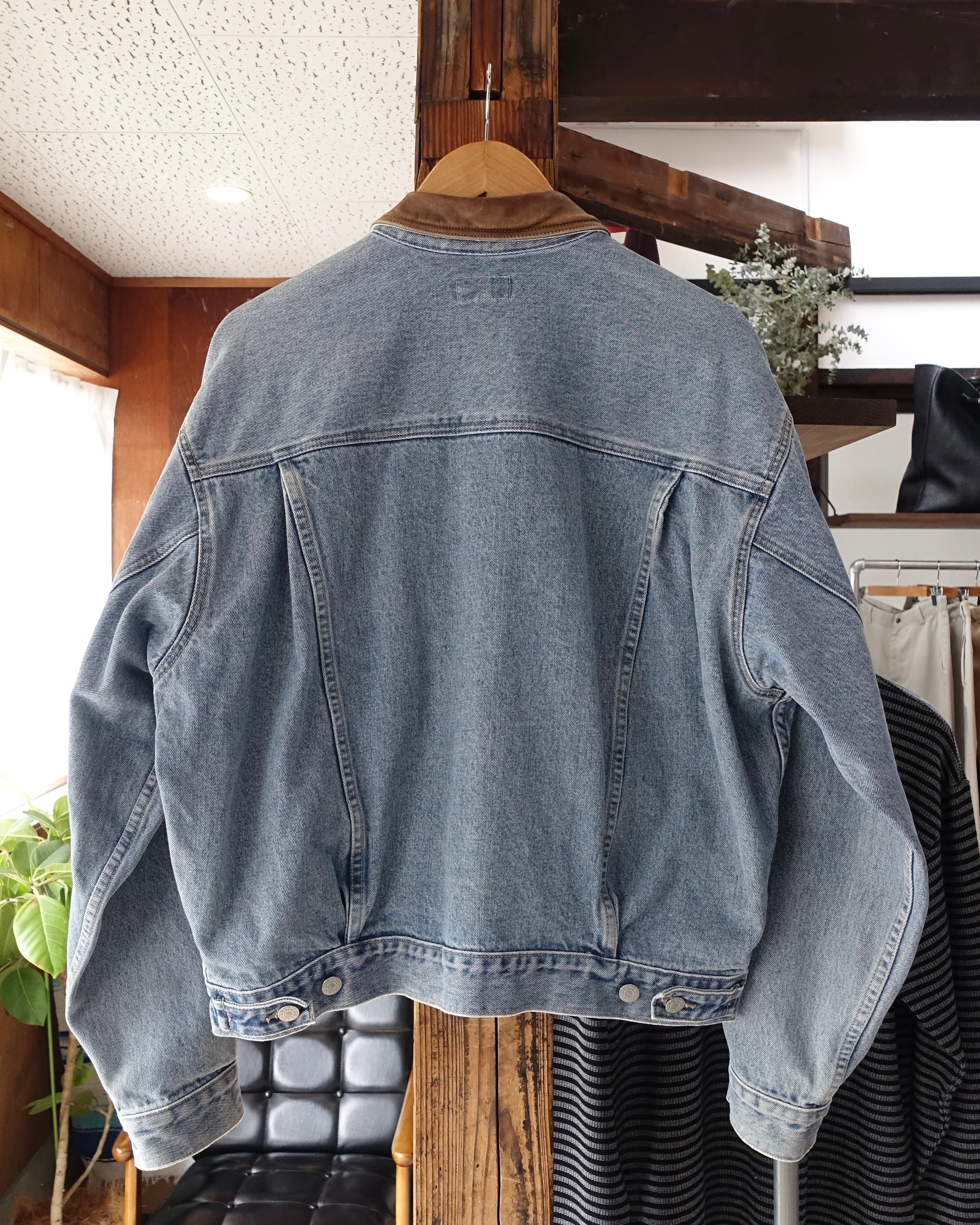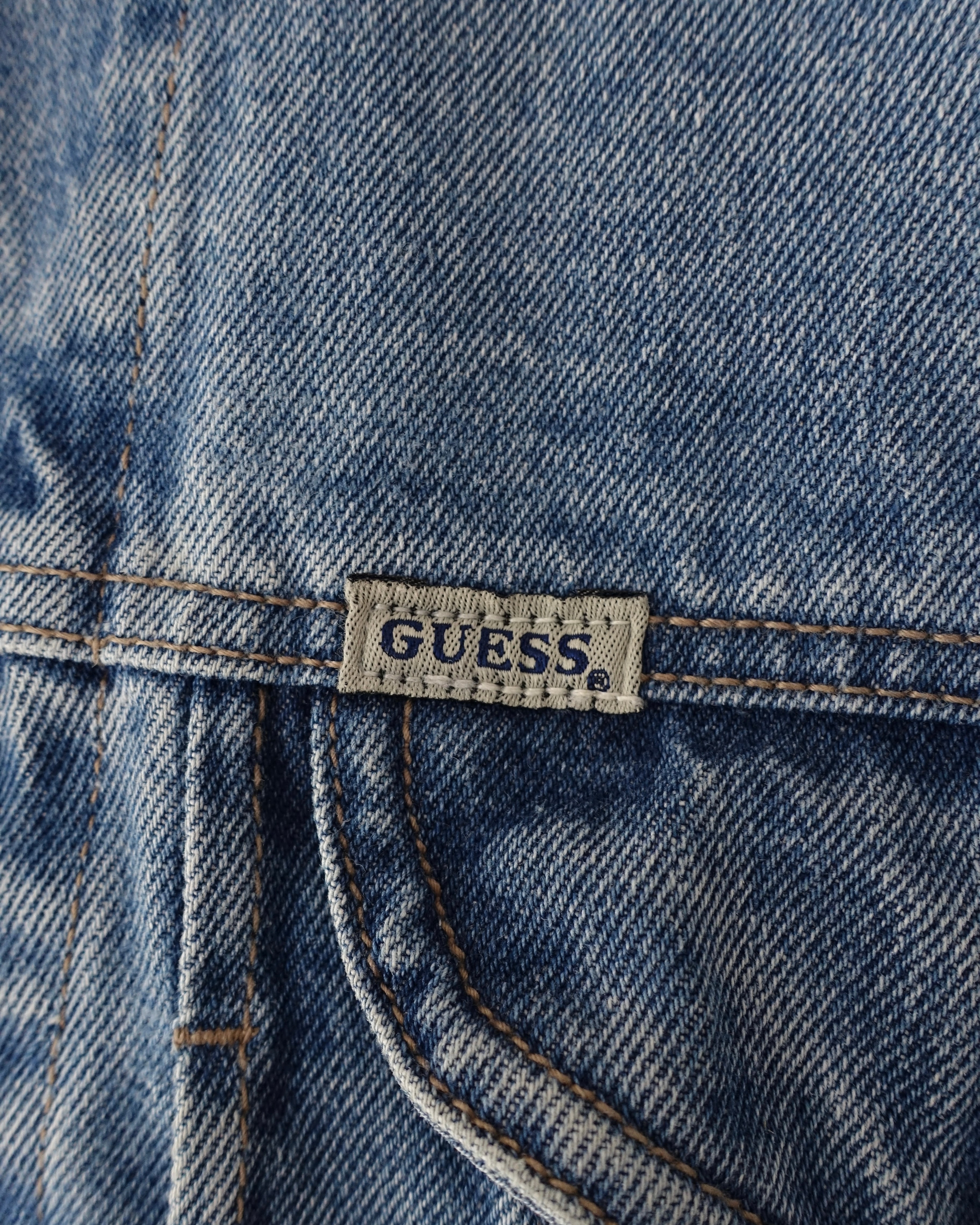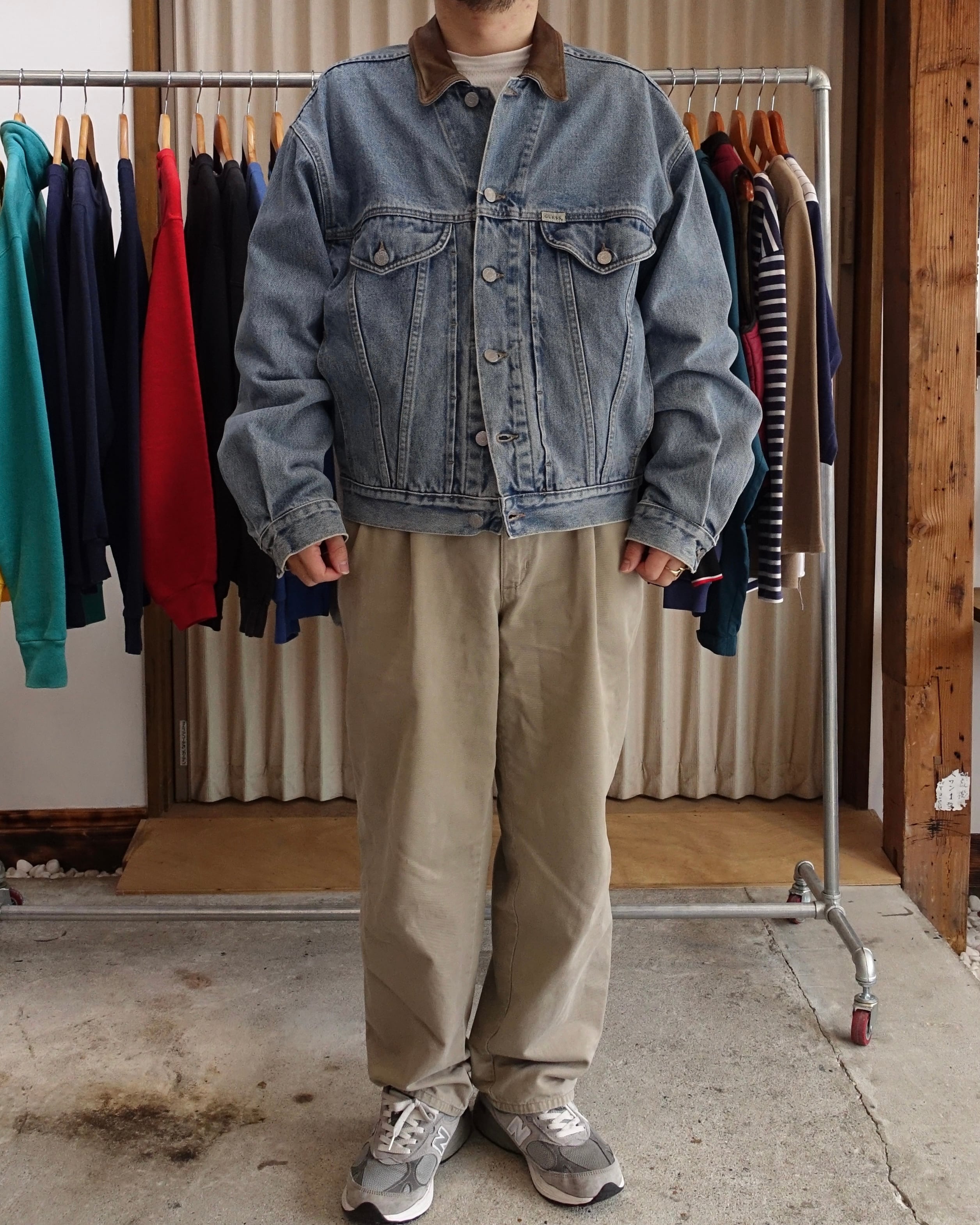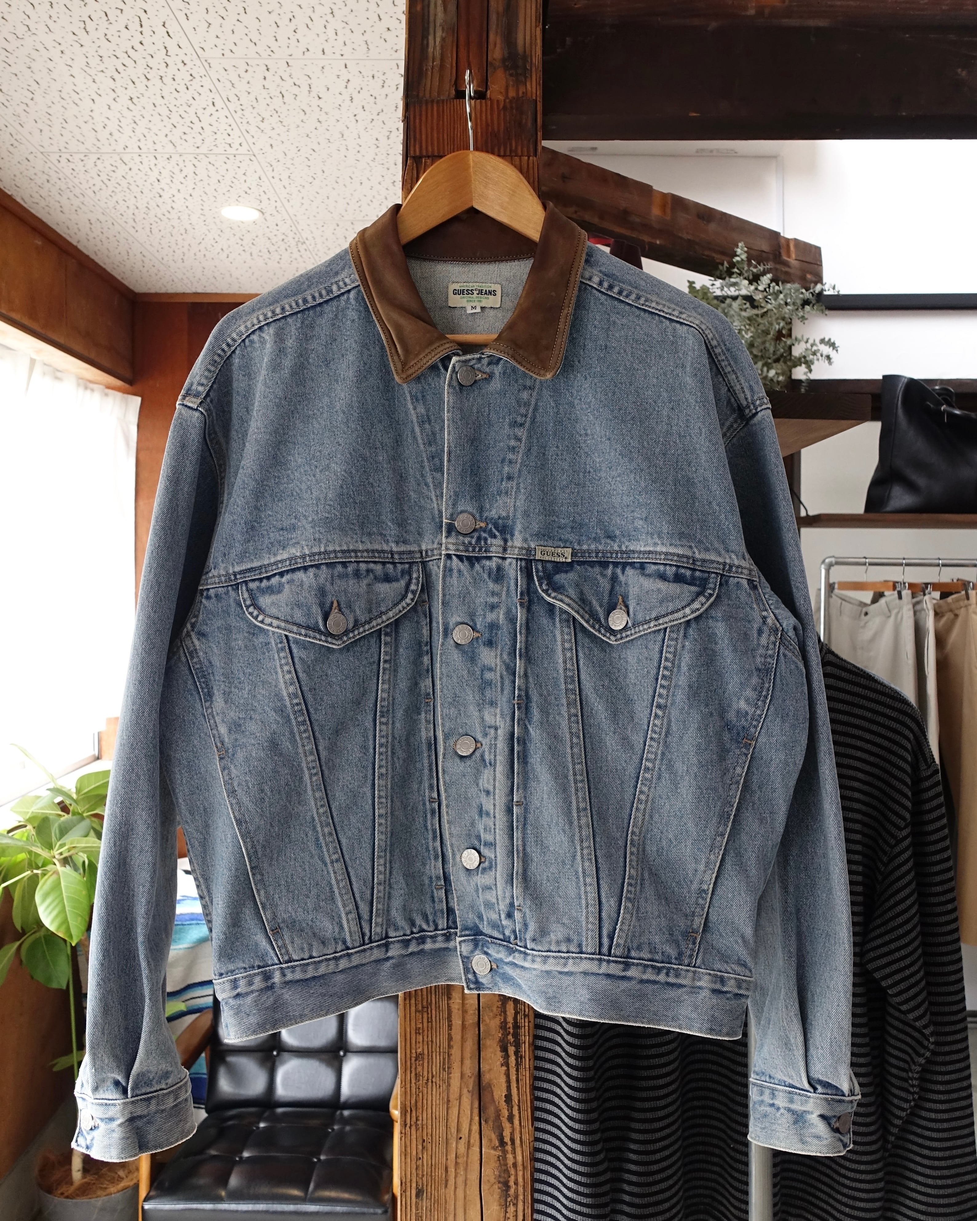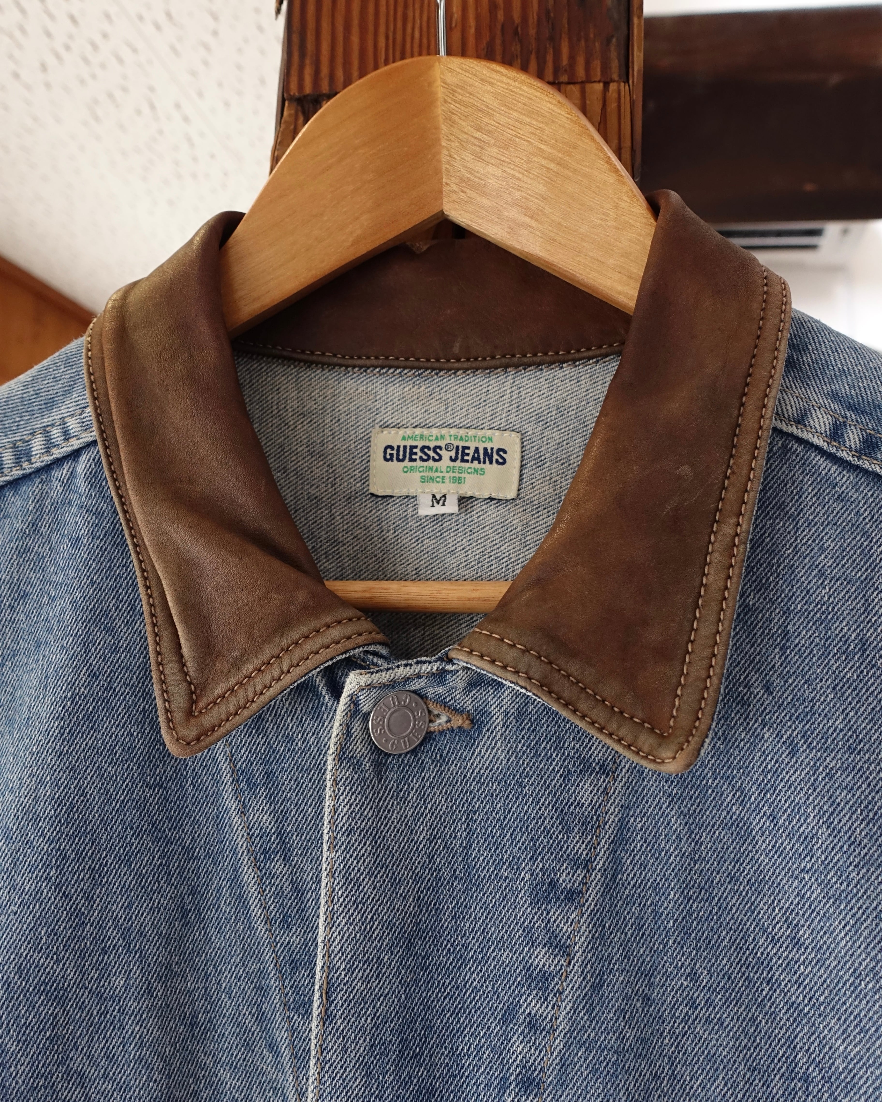 90s GUESS Leather Collar Denim Trucker Size M(L)
