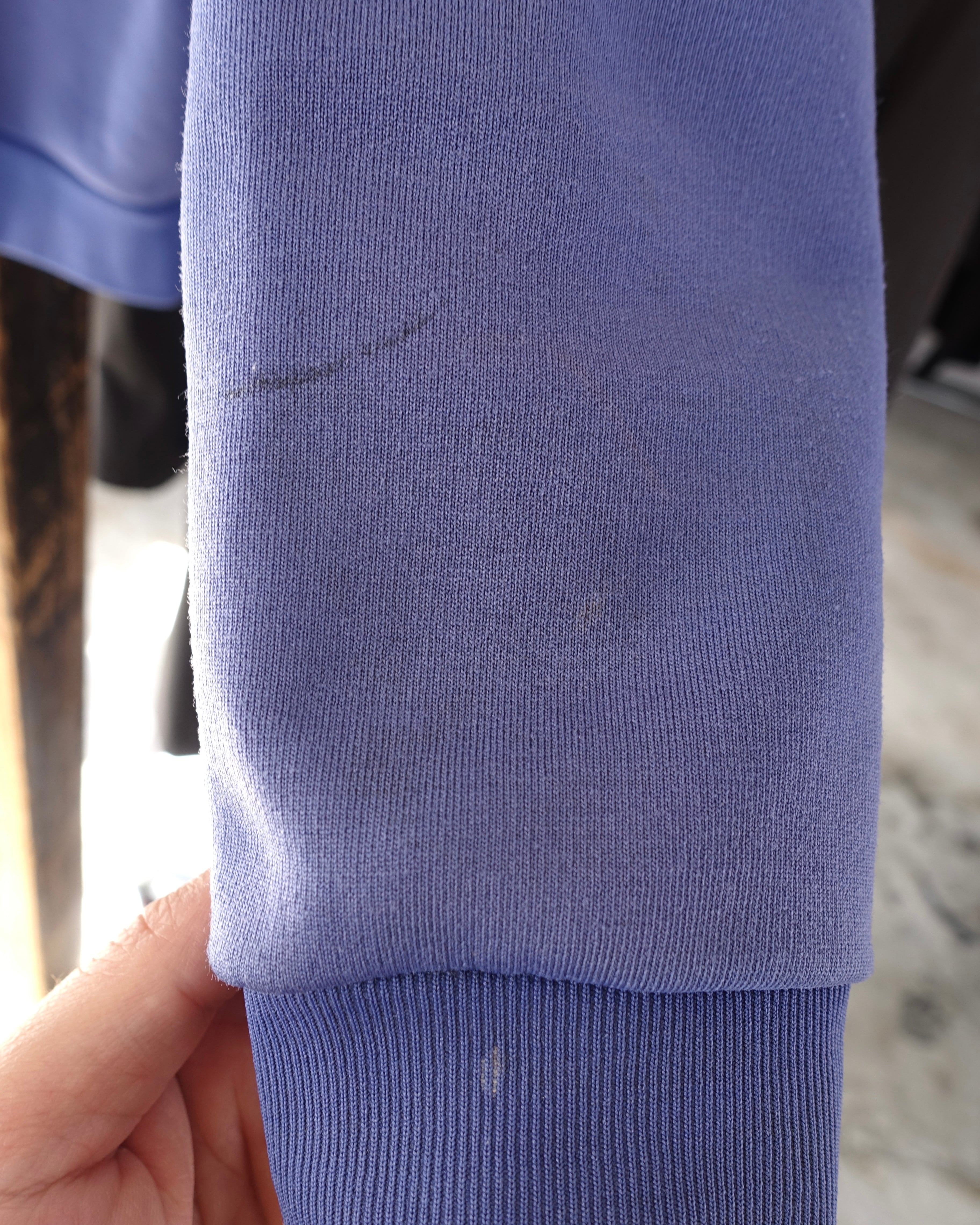 リブの色褪せ、袖に汚れ。