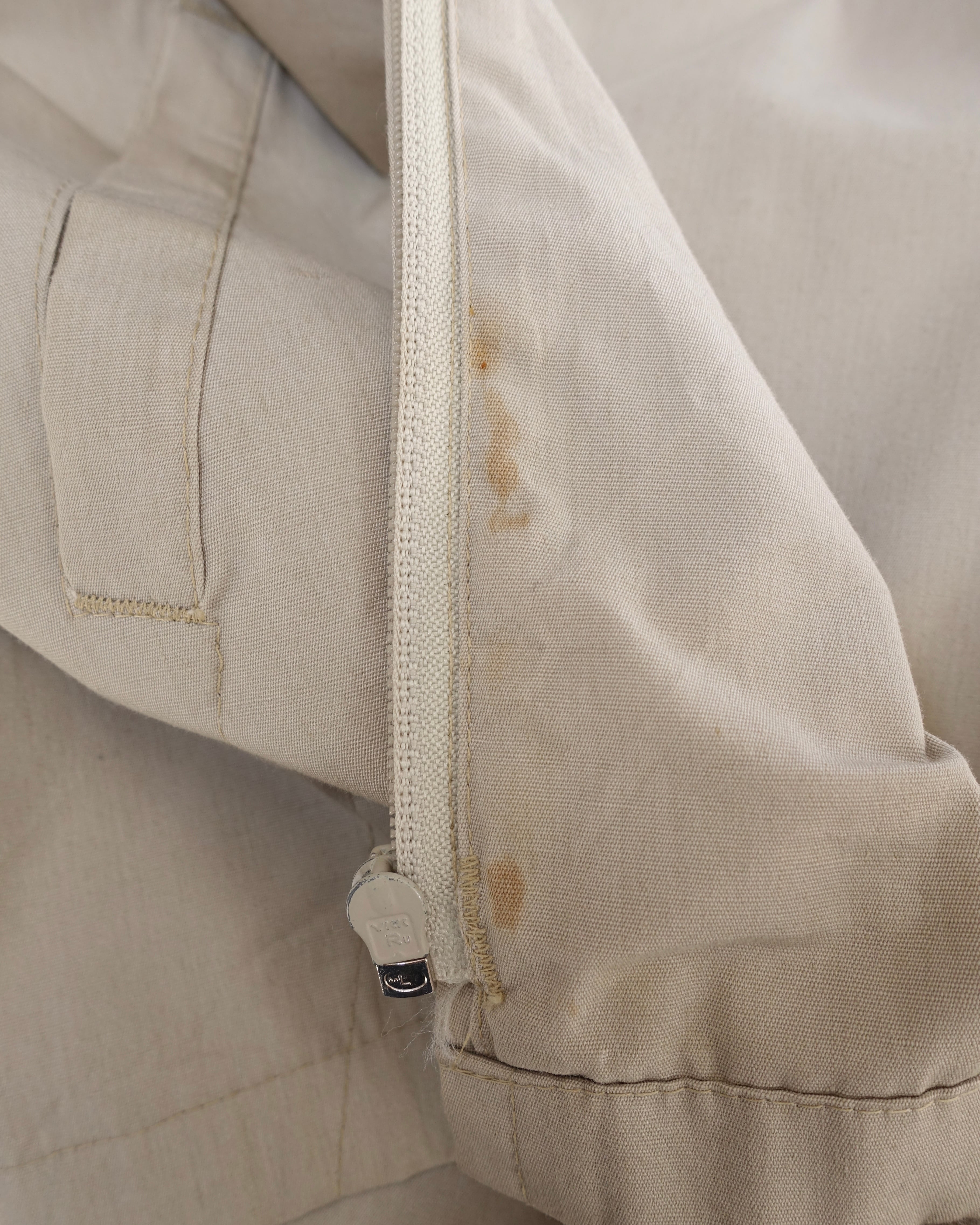 裏地のジップ付近に汚れございます。